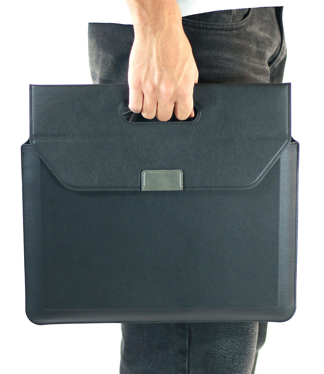 Carry your laptop in style with this elegant black laptop sleeve, designed in a modern...