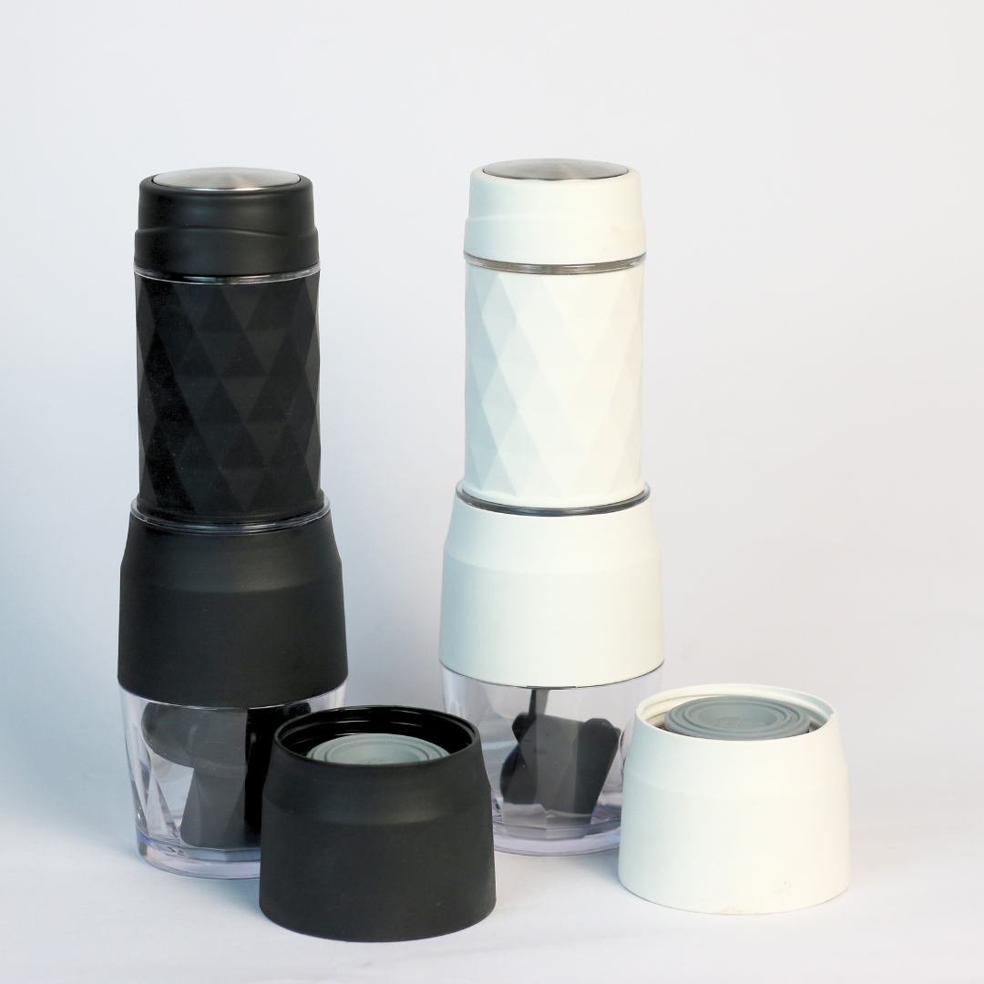 A stylish and compact portable coffee maker, available in sleek black and white designs. Featuring...