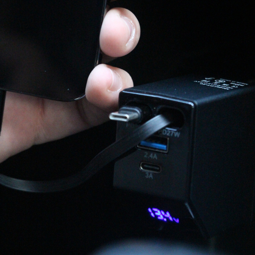 Stay charged wherever the road takes you with this Car Charger with Built-in Cables.Equipped with...