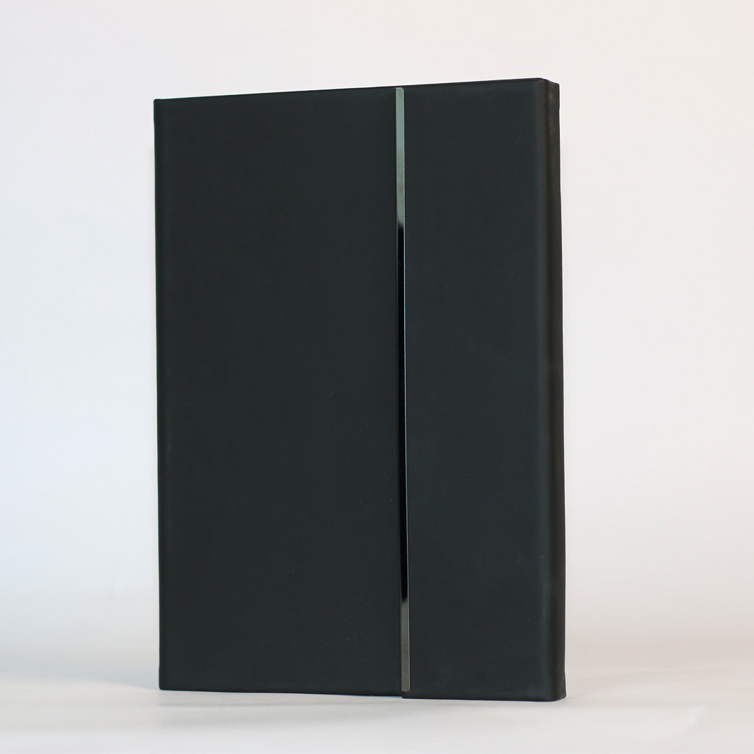 This is a sleek and professional black notebook with a modern, minimalist design. Here's a...