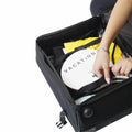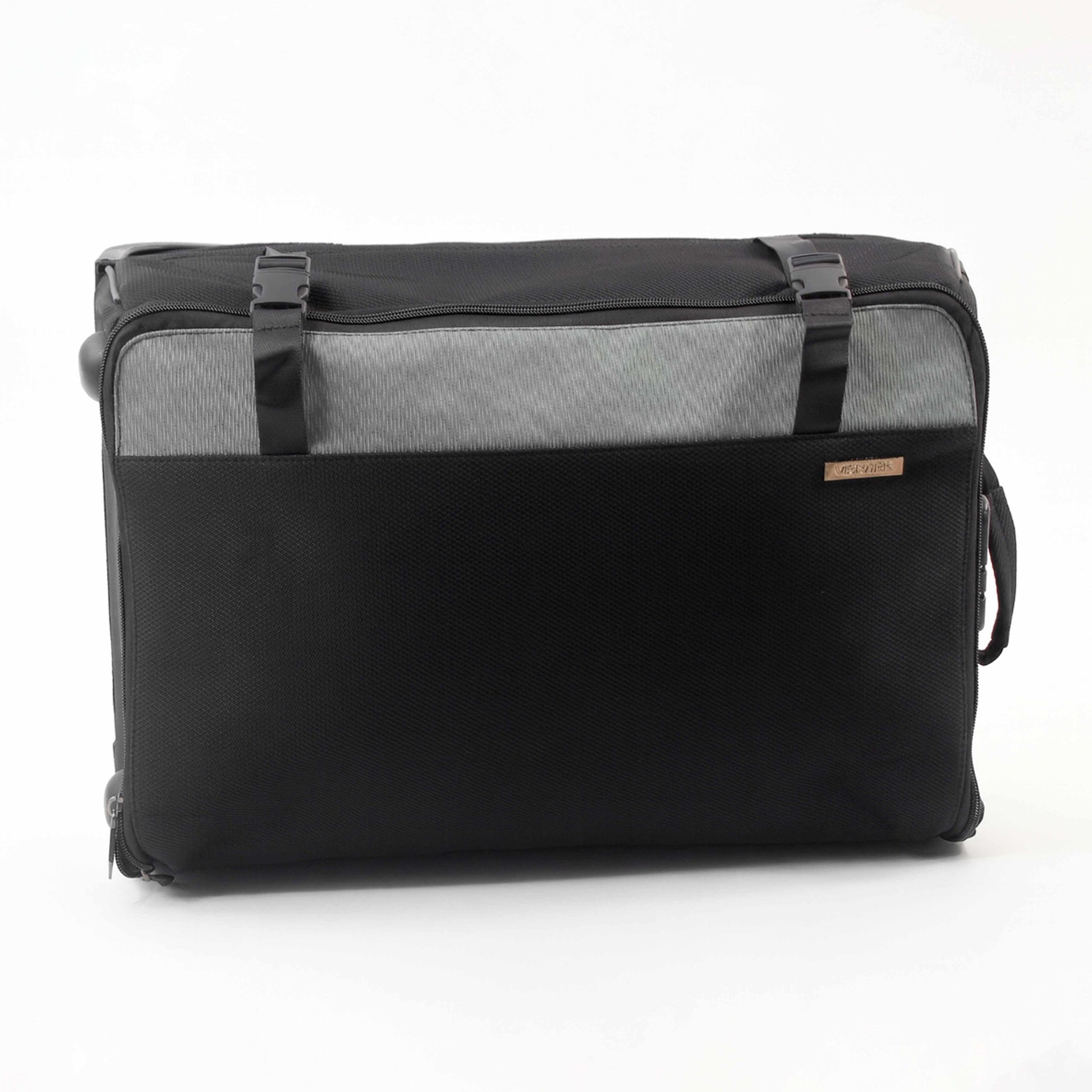 Spacious compartments with organized sections for clothes, shoes, and travel essentials.