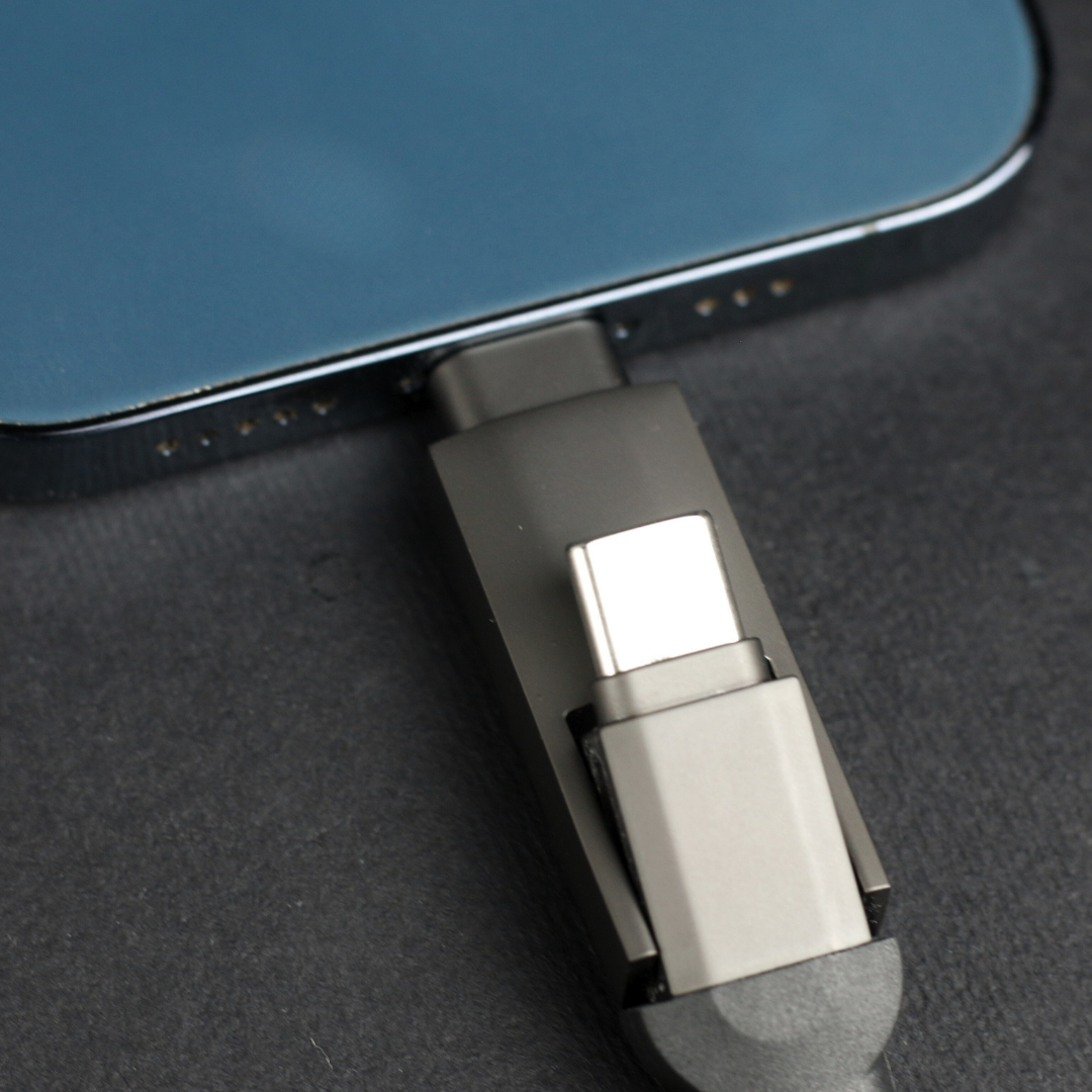 Featuring USB, Type-C, Lightning, and Micro USB connectors, it lets you power multiple devices with one elegant cable.