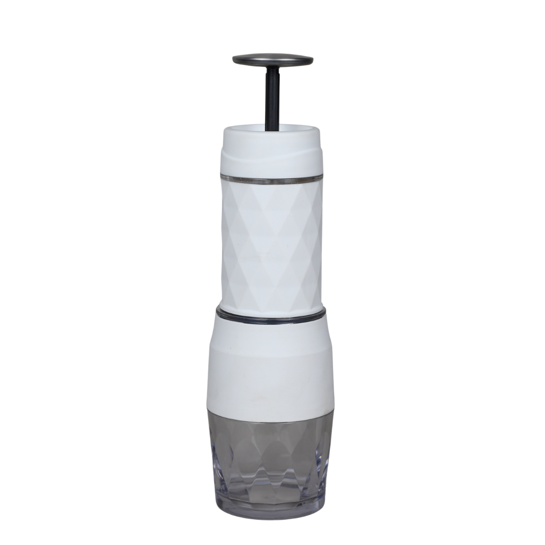 A stylish and compact portable coffee maker, available in sleek black and white designs. Featuring a modern cylindrical shape with a durable build, it allows you to brew fresh coffee anytime, anywhere. Its detachable bottom compartment and easy-to-use mechanism make it perfect for home, office, or travel. A practical and elegant accessory for coffee lovers who value both convenience and style.