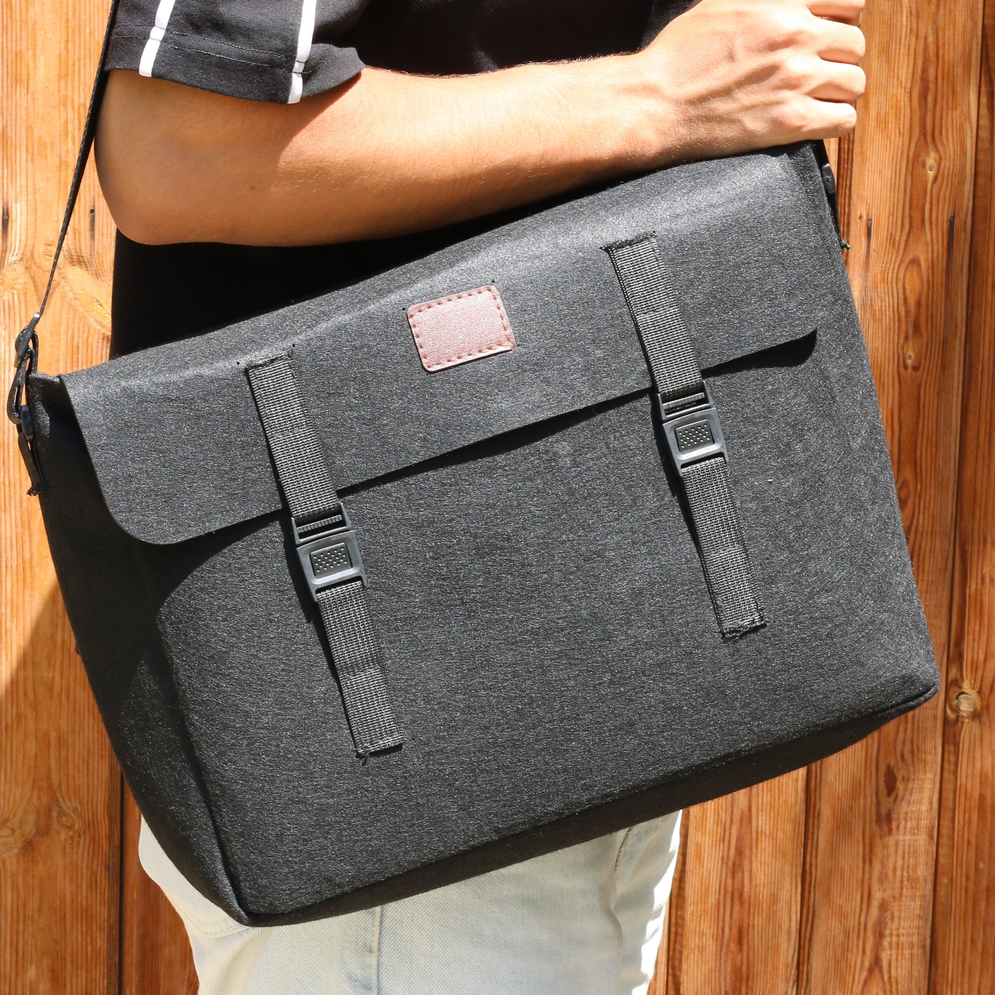A stylish felt cross bag.