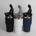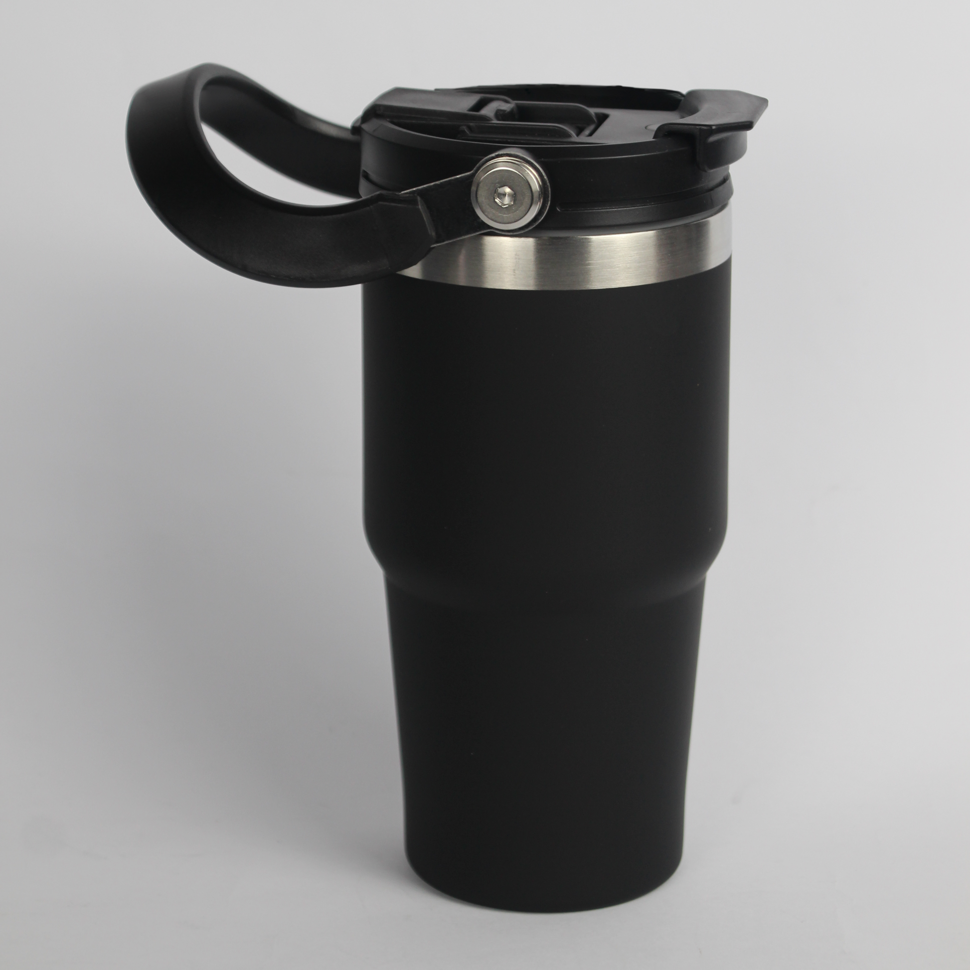 A premium 600ml stainless steel mug with a sleek matte black finish, designed to keep your drinks at the perfect temperature for longer. Its durable, insulated body makes it ideal for both hot and cold beverages, while the secure screw-on lid prevents spills on the go. The ergonomic design ensures a comfortable grip, and the attached carabiner clip adds convenience for travel, office, gym, or outdoor adventures. Stylish, practical, and built to last.