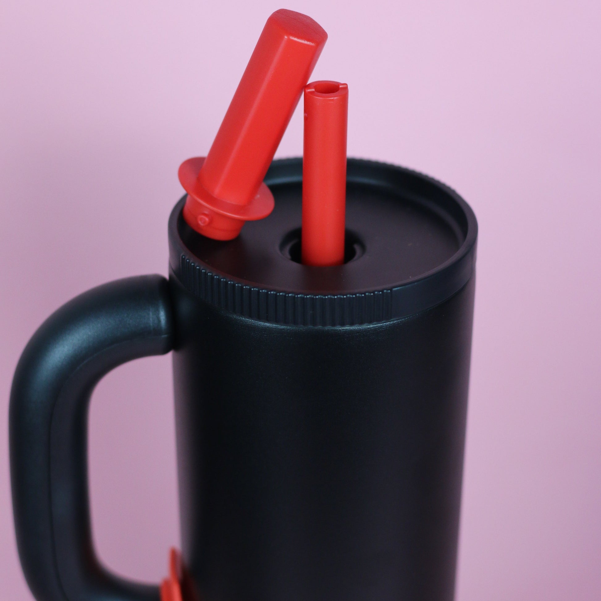 Made from high-quality, food-safe materials, this mug is designed with a comfortable handle for easy carrying, even with its large capacity. The lid comes with a protective cover that keeps dust, dirt, and unwanted particles out, ensuring your drink stays clean and safe. It also includes a built-in straw for effortless sipping whether at home, in the office, or on the go.