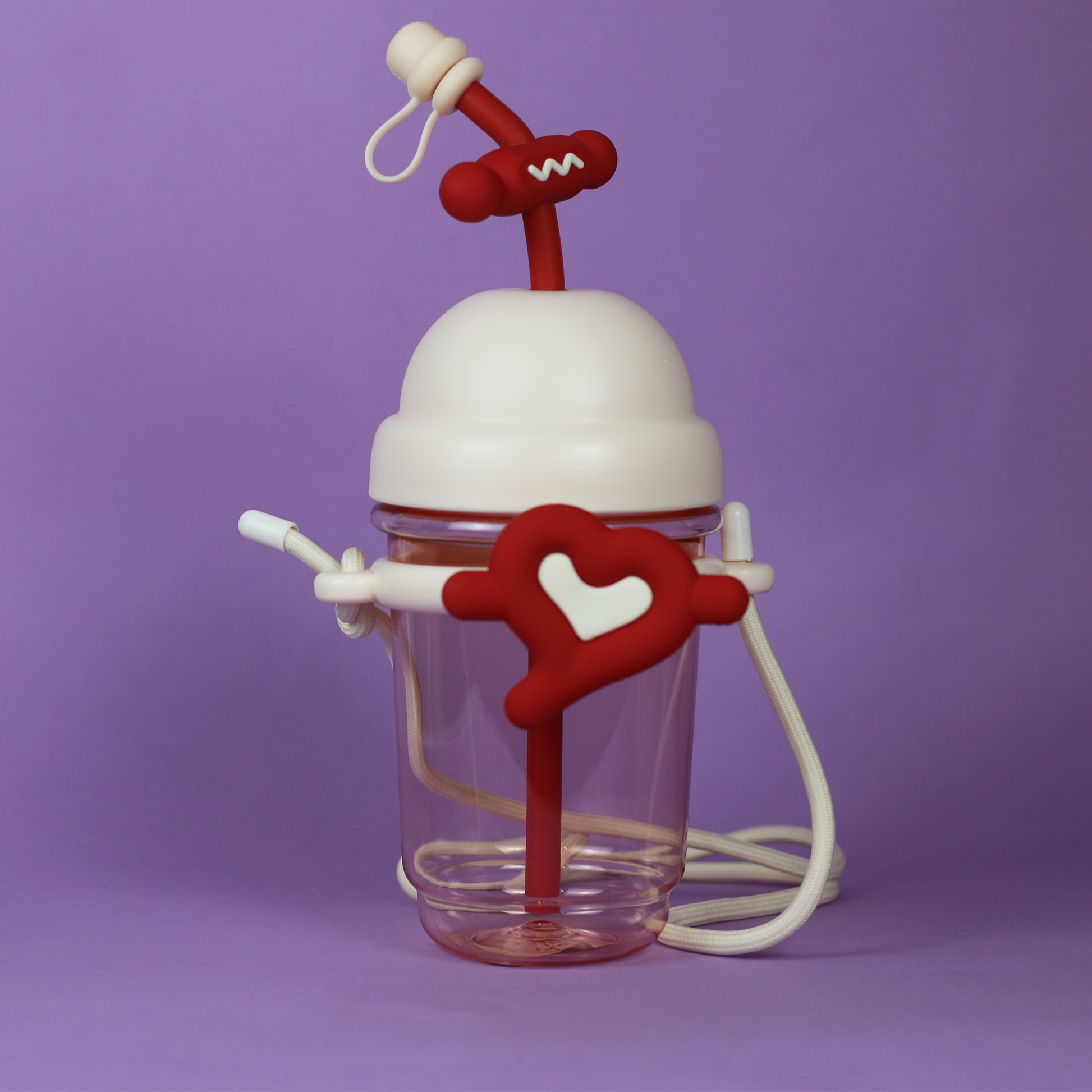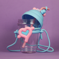 Made from safe, BPA-free plastic, this cup is designed especially for kids. It comes with a secure lid, easy-to-hold design, and a fun straw wrapped in a playful silicone heart-shaped holder. Perfect for toddlers and young children, it helps prevent spills while making drinking more fun.