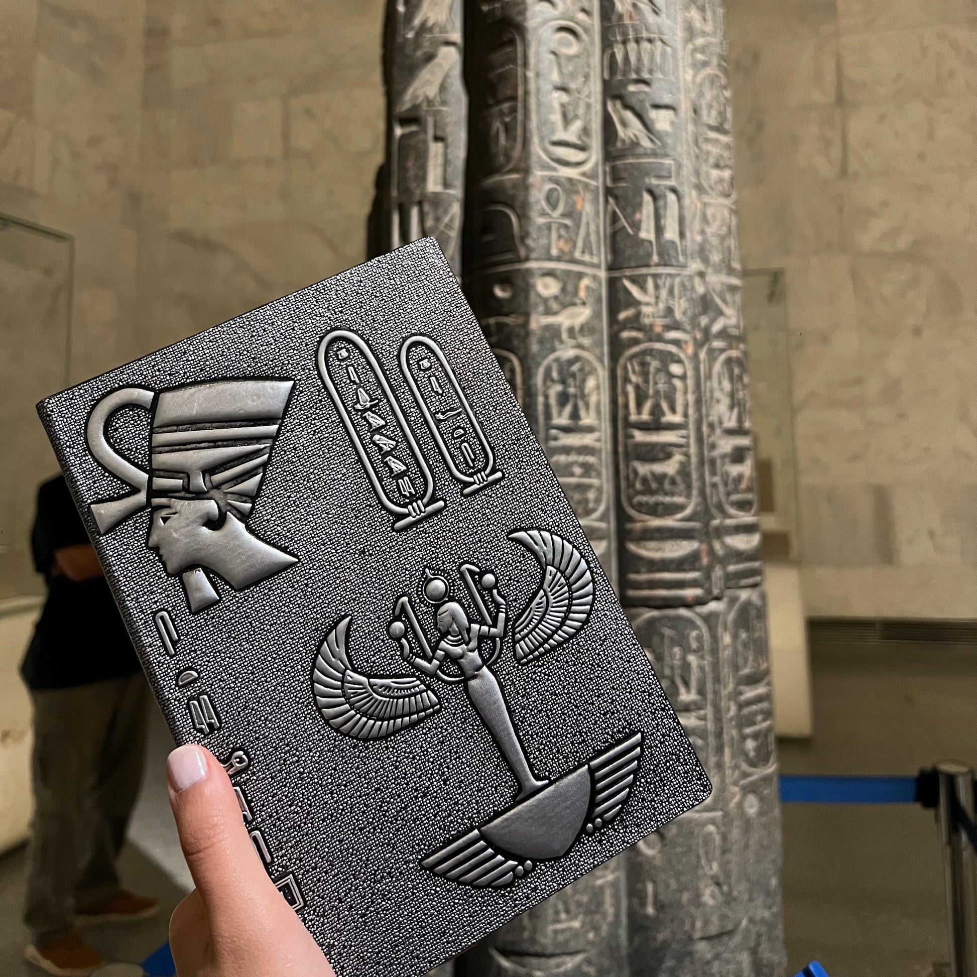 Inspired by the timeless elegance of ancient Egypt, this notebook features a pharaonic-style cover with embossed hieroglyphic details and rich golden tones. Inside, smooth high-quality pages provide the perfect space for writing, sketching, or planning. A notebook that feels like a piece of history crafted for modern thinkers, artists, and dreamers who carry stories of their own.