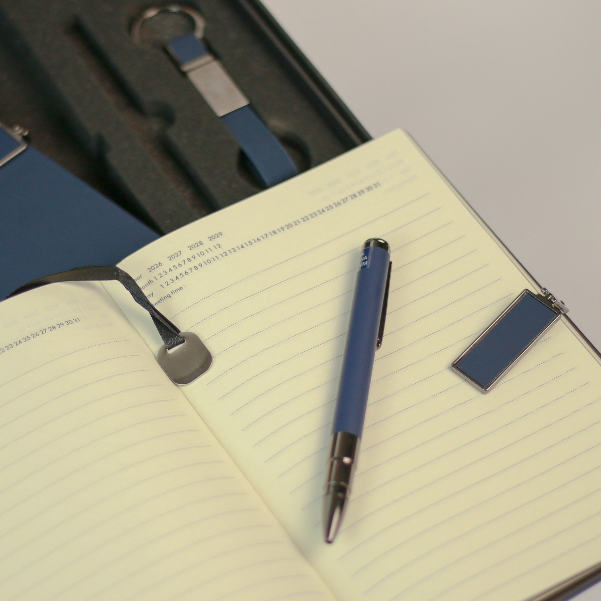 A stylish and practical notebook set designed for everyday inspiration. The set features a premium notebook with smooth, high-quality pages, paired with a matching pen for effortless writing and a themed keychain to complete the look. Perfect for students, creators, professionals, or as a thoughtful gift, this set brings elegance and functionality together, whether you're journaling, planning, sketching, or taking notes on the go.