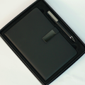 Elegant Black Notebook Set: A timeless and sophisticated set featuring a sleek black A5 notebook paired with a matching metallic pen, all presented in a premium gift box.