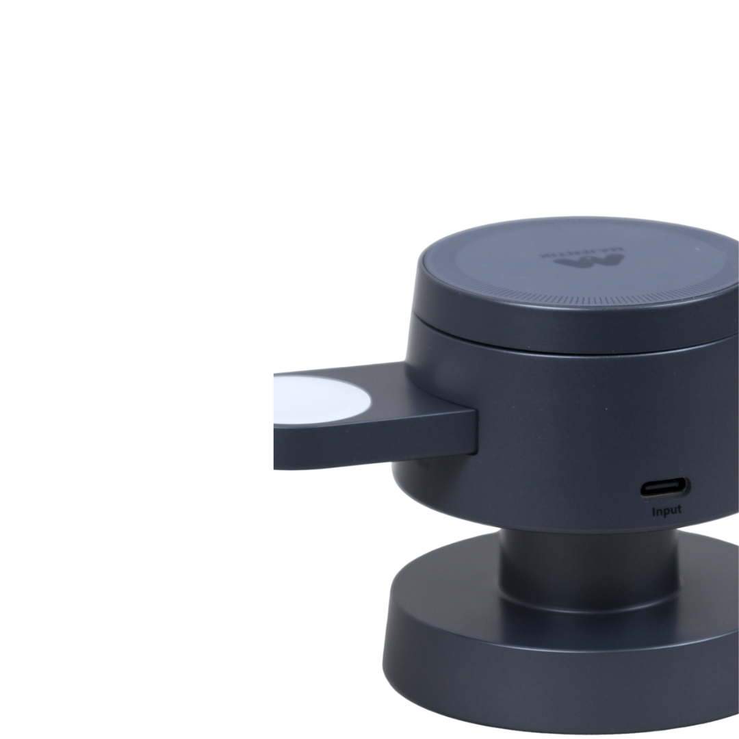 Multifunctional wireless power bank designed to charge your phone, smartwatch, and AirPods all at once, without any cables.