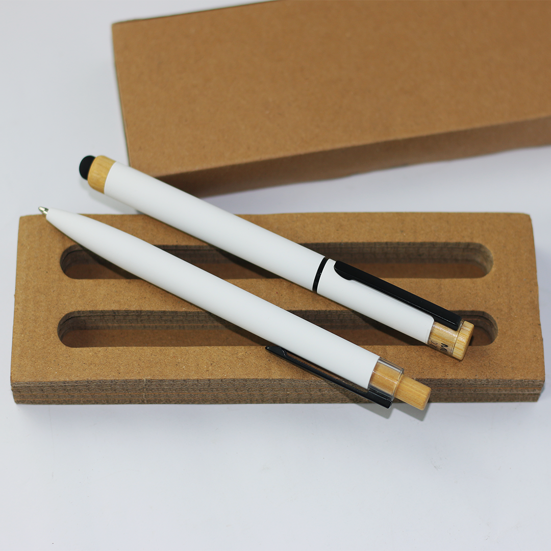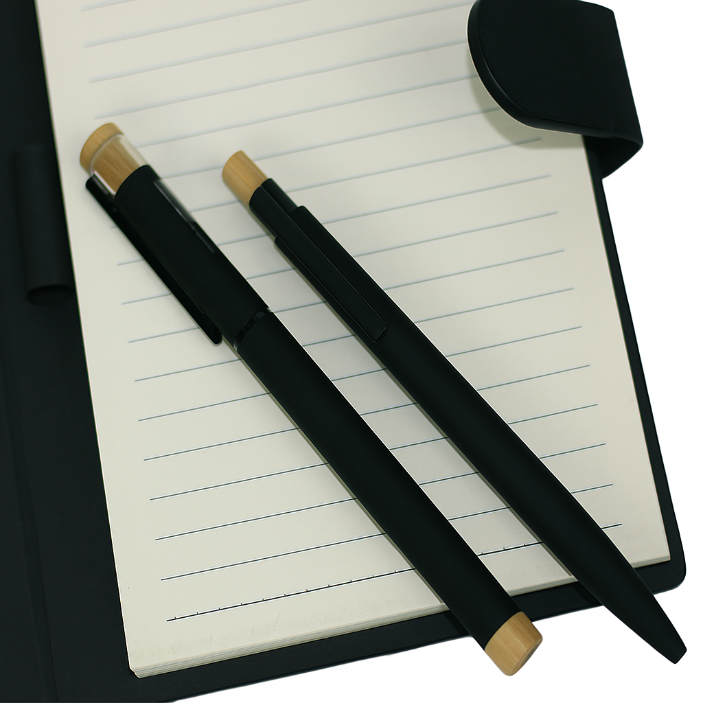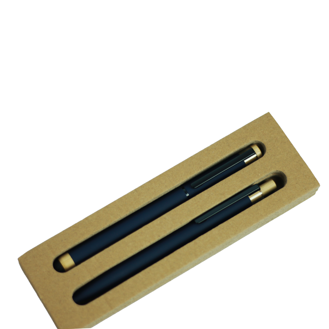 This sophisticated pen set features two sleek navy pens accented with golden details for a modern, luxurious look. Designed with a smooth matte finish, each pen offers effortless writing comfort and a refined feel in hand. The set includes a classic ballpoint pen and a touch pen, making it perfect for both paper notes and digital screens. Ideal for professionals, students, or as an elegant gift that blends practicality with style.